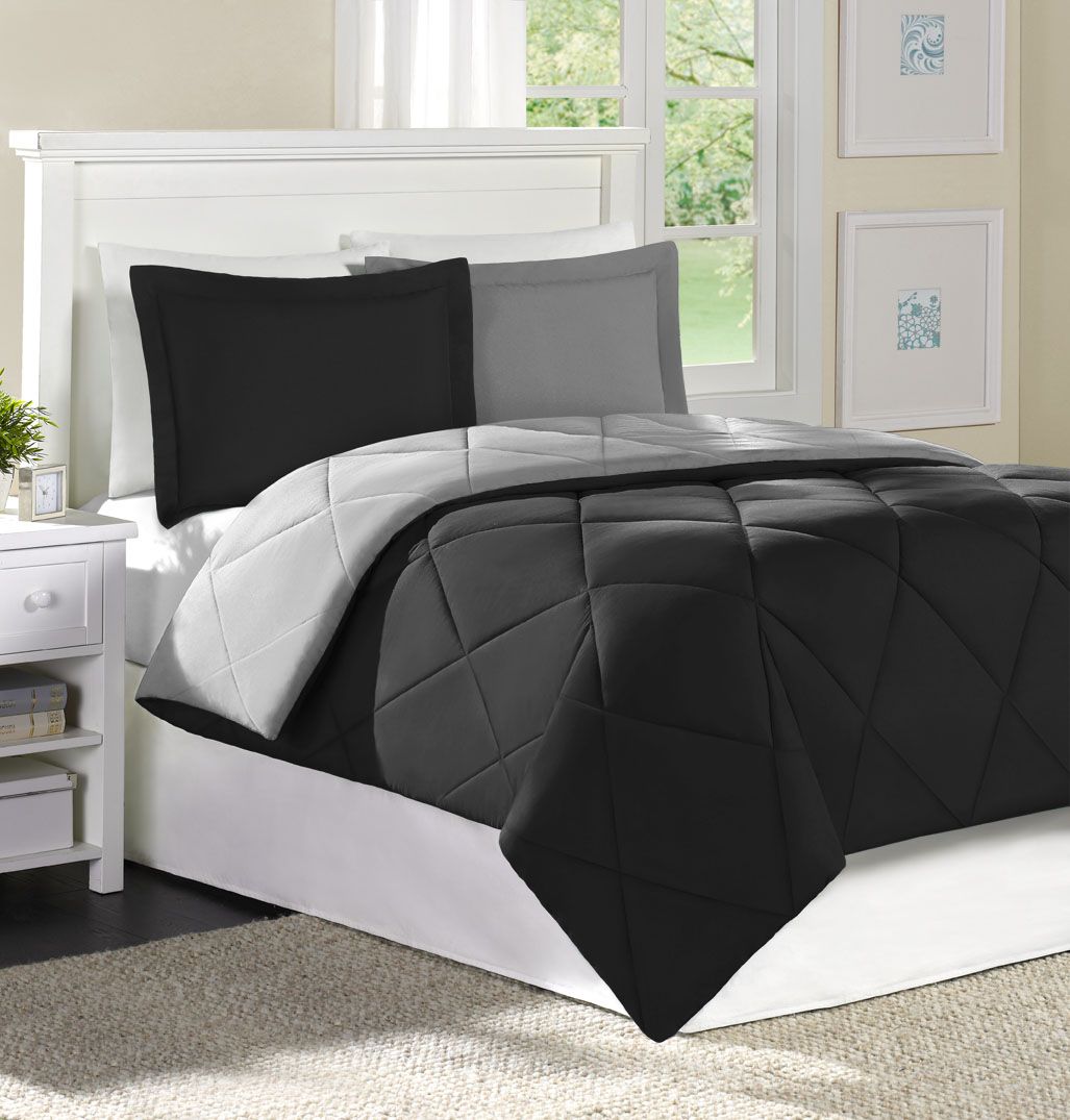 Comfort Classics Chadwick Down Alternative Microfiber Comforter Mini Set - Black/Gray - | ![]() | ![]() | USD | |