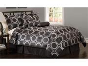 A contemporary geometric bedding collection in silver, ivory and black, the First Apartment Geo Grid bedding ensemble will transform your bedroom into a modern and sophisticated retreat. Available in Queen and King sizes, the First Apartment Geo Grid bed in a bag includes a comforter, standard shams, bedskirt, and three bonus pillows. The comforter features a circle and square grid pattern in silver and ivory on a black ground and has a silky look accented with a corded trim in ivory and black. Standard shams mirror the comforter's geometric design in coordinating colors accented with a generous flange and a twist cord trim. The tailored black bedskirt has a 15-inch drop complemented with kickbox pleats. Coordinate your bedroom decor with the included First Apartment Geo Grid bonus pillows; a decorative pillow reflecting the comforter's geometric pattern in coordinating colors accented with twist cord edging, a boudoir pillow that mirrors the comforter's geometric design in coordinating colors accented with a corded trim in ivory and black and a neckroll pillow in solid black complemented with geometric designs on the side in coordinating colors accented with a corded trim.