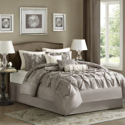 price comparisons of Madison Classics Jacqueline Plum King 7 pcs Comforter Set This beautifully tufted bedding set is from the Vivian bedding collection. Its neutral taupe or plum coloring makes this set easy to accessorize in your bedroom. Set includes: One comforter, two shams, 1 bedskirt, 3 pillows Style: Solid Fabric detail: Woven Pattern: Pieced Bedskirt drop length: 15 inches Comforter/sham materials: Polyoni pieced with pleats, polyester brushed back Bedskirt materials: 100-percent polyester Pillow materials: Polyoni cover Care instructions: Machine wash cold, separately. Tumble dry low, remove promptly. Queen Dimensions Comforter: 90 inches wide x 90 inches long Bedskirt: 60 inches wide x 80 inches long Sham: 20 inches wide x 26 inches long Pillow1: 18 inches wide x 18 inches long Pillow2: 16 inches wide x 16 inches long Pillow3: 12 inches wide x 20 inches long King Dimensions Comforter: 104 inches wide x 92 inches long Bedskirt: 78 inches wide x80 inches long Sham: 20 inches wide x 36 inches long Pillow1: 18 inches wide x 18 inches long Pillow2: 16 inches wide x 16 inches long Pillow3: 12 inches wide x 20 inches long Cal King Dimensions Comforter: 104 inches wide x 92 inches long Bedskirt:72 inches wide x 84 inches long Sham: 20 inches wide x 36 inches long Pillow1: 18 inches wide x 18 inches long Pillow2: 16 inches wide x 16 inches long Pillow3: 12 inches wide x 20 inches long The digital images we display have the most accurate color possible. However, due to differences in computer monitors, we cannot be responsible for variations in color between the actual product and your screen.