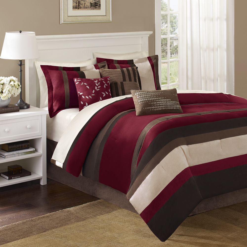 Madison Park Boulder Stripe 7 Piece Comforter Set - Red - King Description